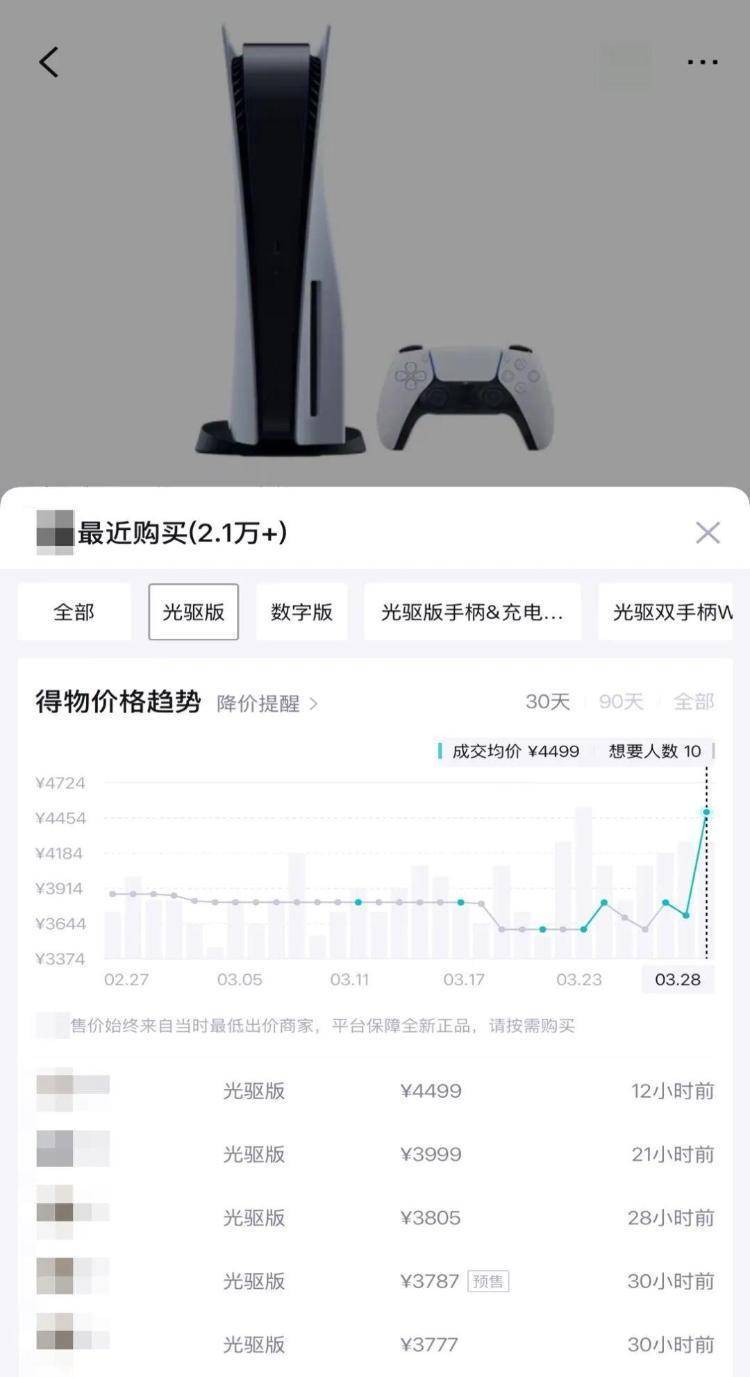 得物App数据显示,由于全网多个渠道已缺货,PS5市场成交价应声上涨,最高上涨760元。