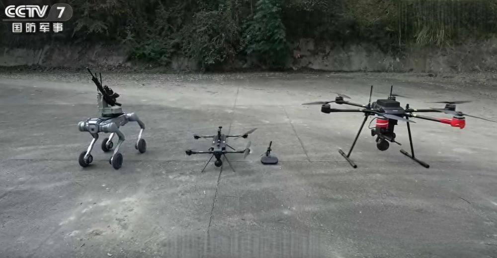 据介绍,这两款无人飞枪除了独立作战,还能实时共享战场信息,与机器狼等地面智能装备配合开展行动。